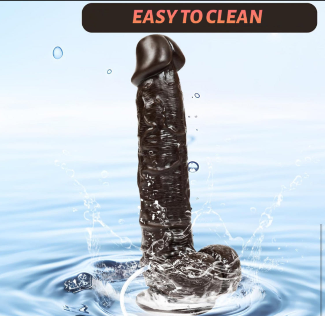 easy to clean, water proof, flexible dildo. hands free instrument, with realistic comfort