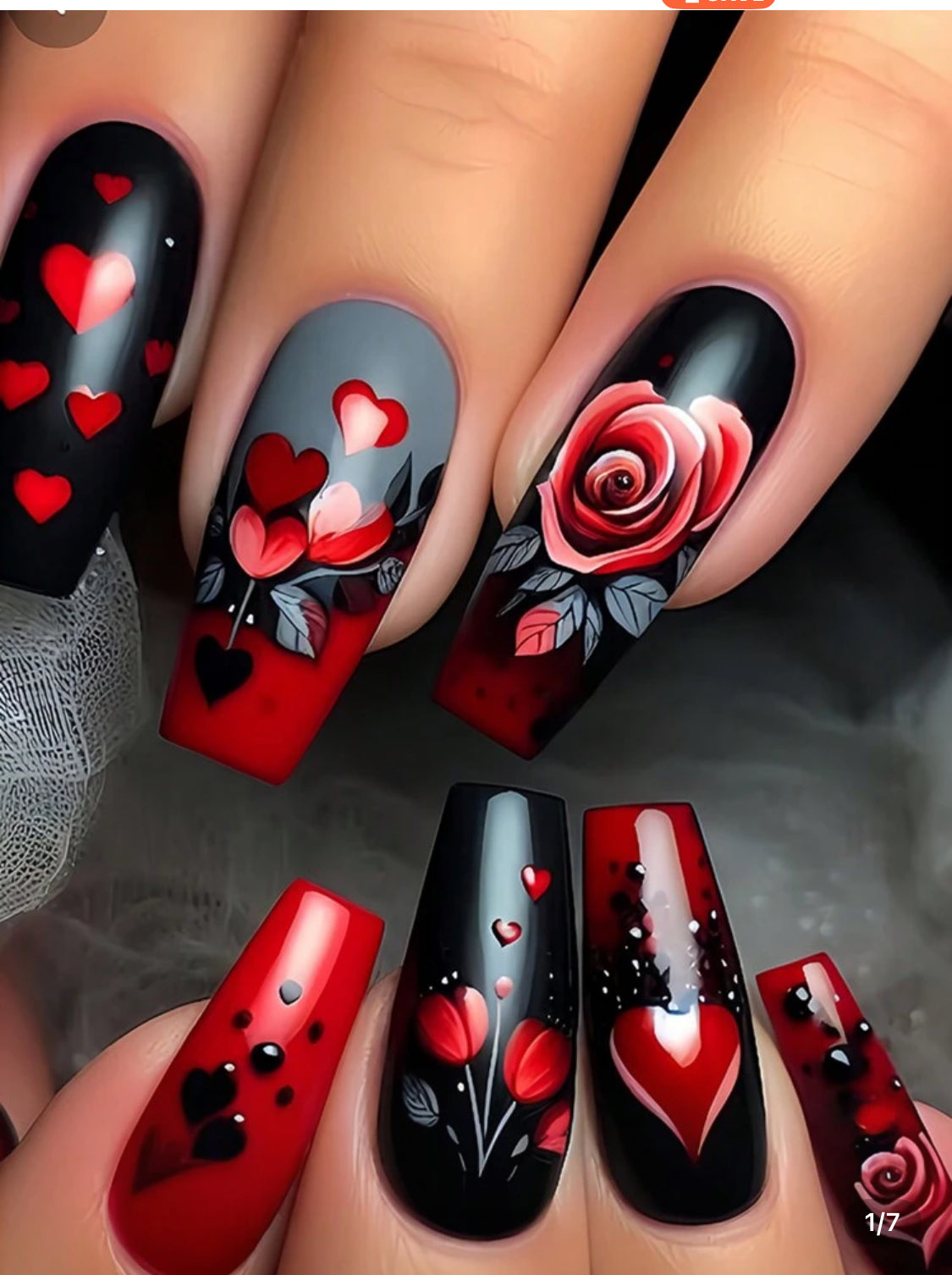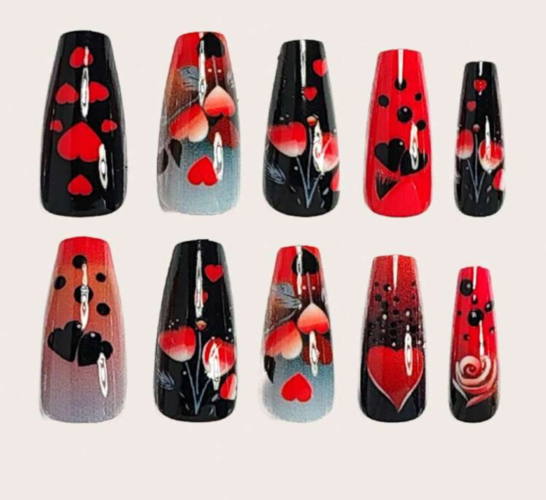 Express Your Love With 24pcs Coffin Shape Mani Press On Nails Valentines Nails Cute Fashion Red Black Love Red Gradient Black Fake Nails Elegant Beautiful Red Roses Heart Bouquet Red Fake Nails Valentine's Day Fake Nails Mother's Day Nails Full Cover Fake Nail Set For Women And Girls Includes Nail Salon With 1 Piece Of Jelly Gel And 1 File Stri Jelly Gel Random Shipment