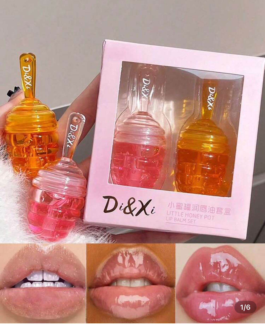 Little Honey Jar Lip Oil Set ,No-Sticky Gloss Lip Balm Lip Care Fruit Flavoured Lip Oil For Dry Lip's Moisturizing Hydrating And Nourishing (Peach And Honey)