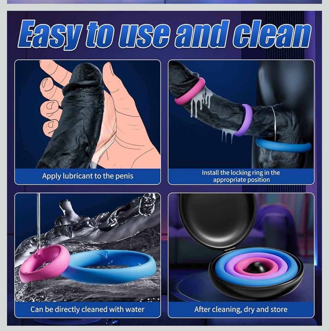 - High Quality Silicone Cock Ring: This male sex toys is made of the latest and best elastic soft silicone material; and comes with a sex toy box; couples sex time after the end of the wash into the box; you can effectively prevent dust; to ensure health and safety !!!!